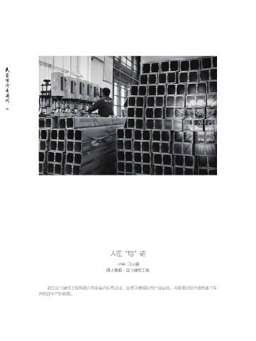 30 人在“铝”途 (作者)刁元康 摄于泰顺·亚飞建筑工程 浙江亚飞建筑工程有限公司是省内优秀企业,坐落于泰顺彭月产业基地。光影透过铝合金传递了车 间和谐生产的画面。