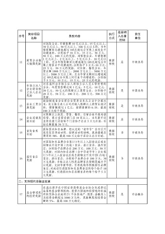 16 招引首店 首店、浙江首店,分别给予品牌企业 100 万元、30 数据 否 市商务局