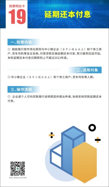 政策明白卡 19 延期还本付息 长按二维码关注更多政策